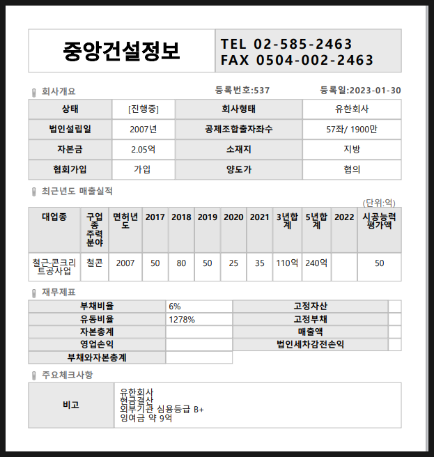 건설업 등록 및 건설법인면허 양도양수 대리 전문 중앙건설정보입니다.