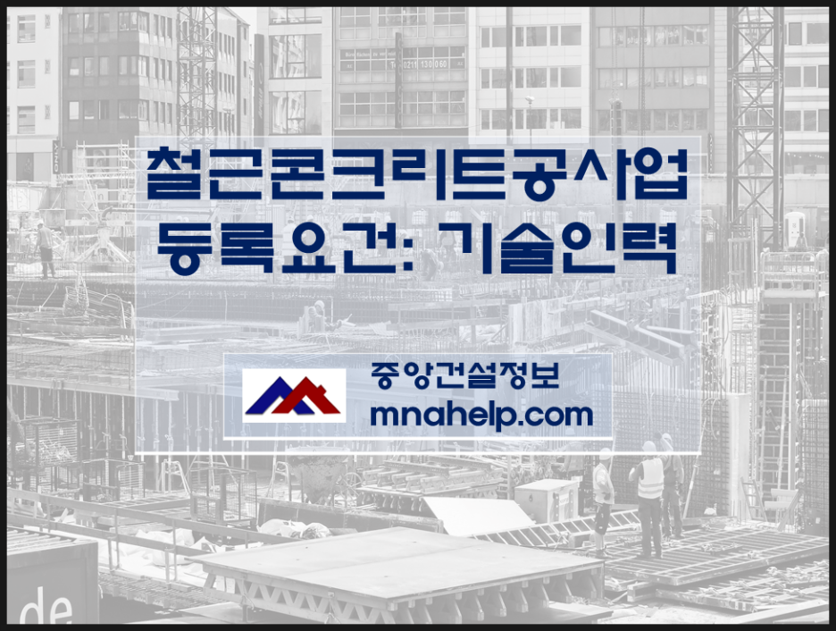 철근콘크리트공사업은 건설기술진흥법에 따른 토목, 건축분야 초급이상의 건설기술자 또는 국가기술자격법에 따른 관련 종목의 기술자격취득자중 2명이상을 채용하여야 합니다.